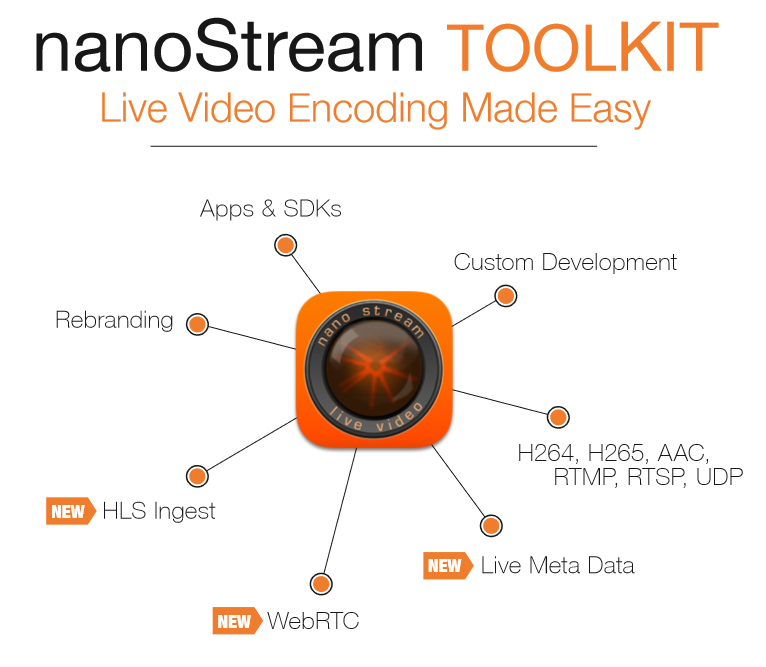 nanoStream Live Encoding Software @ NAB Show 2015 Join us at the NAB Show in Las Vegas Join us in Las Vegas to talk about our new nanoStream software solutions for Mobile, Desktop and Browser based Live Video Encoding. See how easy it is with our nanoStream technology tocreate your own professional live streaming applications (for live production of news, sports, music, worship, conferencing,...