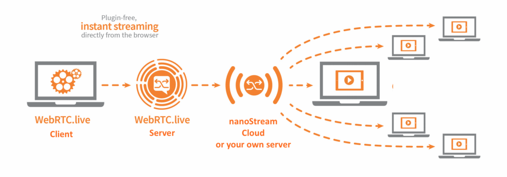 We are entering a new live streaming era where browser-based, plugin-free and ultra-low latency on any device are the key drivers for interactive customer engagement. What’s needed? nanoStream Webcaster (formerly known as WebRTC.live) in combination with nanoStream Cloud!