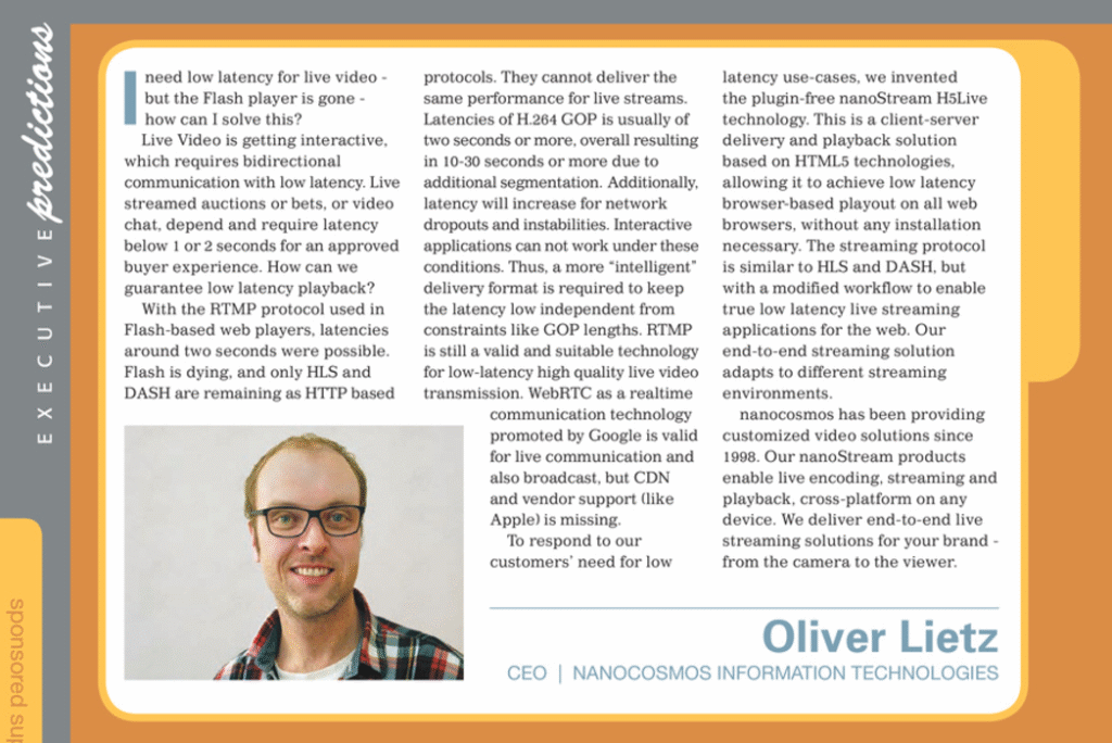 nanocosmos Executive Prediction for 2017 in Streaming Media Magazine.