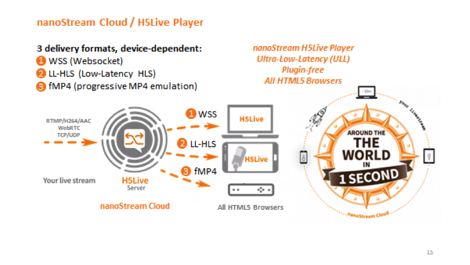 nanoStream Cloud and H5Live enable a scalable solution for large audiences.