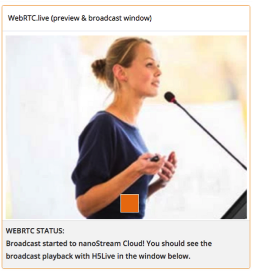 Simple playback of your live stream: a new area with nanoStream H5Live Player will appear right below with your live stream.