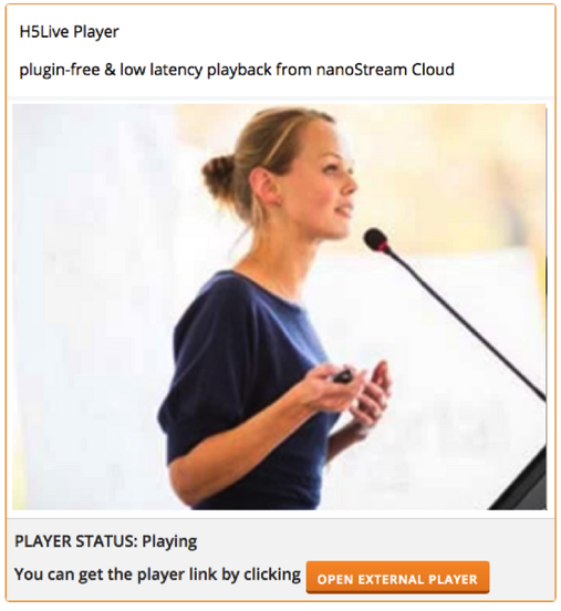 The live stream is sent to nanoStream Cloud and can be played with the H5Live player.