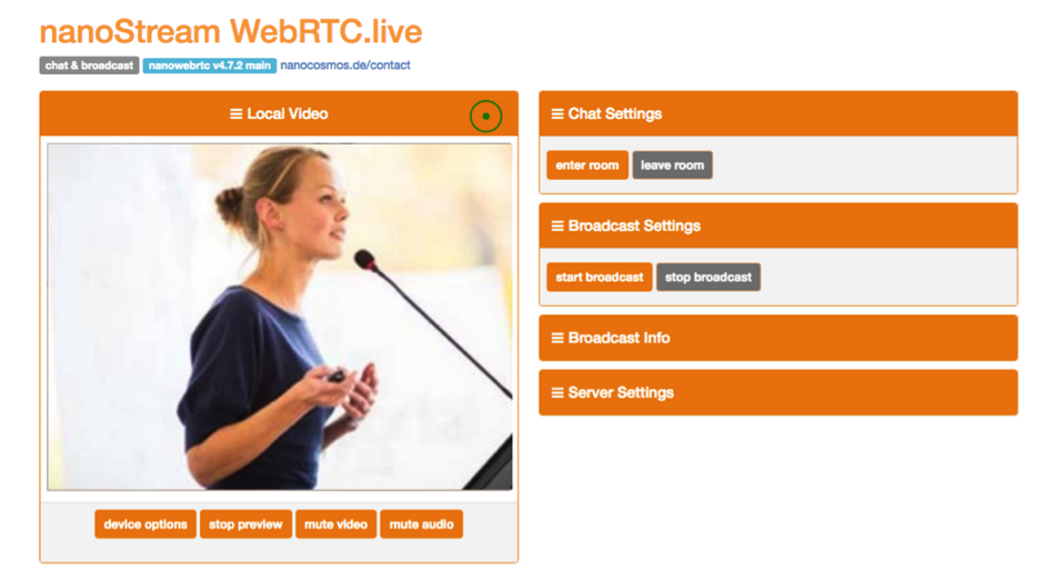 You can use our sample web page with all broadcast features for further testing.