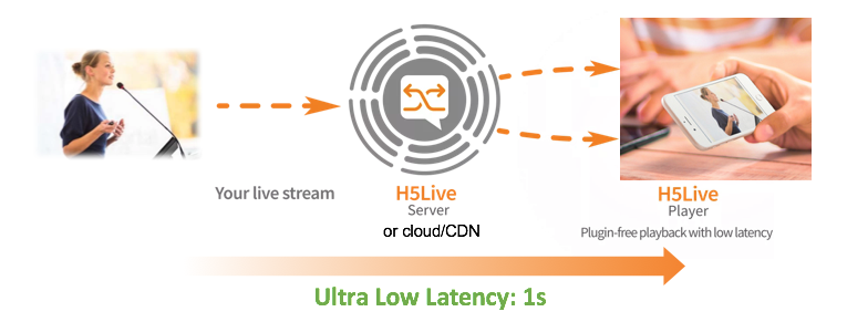 nanoStream WebRTC.live closes this gap and can be used for live encoding and broadcast, but on the delivery side it is missing CDN and vendor support (e.g., it is not supported by Apple). H5Live is much better scalable and compatible to all browsers on all devices.
