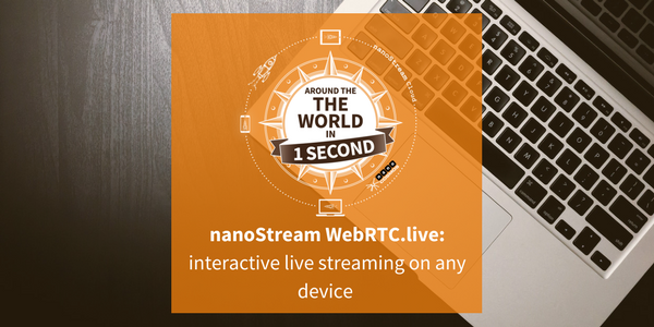 From Flash-free to plugin-free: live streaming to large audiences around the world in 1 second. How? nanoStream Webcaster for Live encoding and nanoStream Cloud incl. nanoStream H5Live for Playback. nanoStream Webcaster is the perfect scalable browser-based live encoding and broadcast/webcast solution for interactive live streaming applications with ultra-low latency. NanoStream Webcaster is plugin-free and available as a service or as an Add-on for nanoStream Cloud. For live playback, nanoStream Cloud contains the unique nanoStream H5Live Player for ultra-low latency browser playback on any device or HTML5 browser.