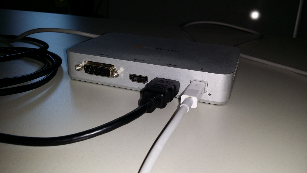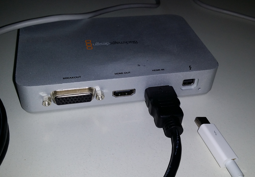 Connect the Go Pro Hero4 camera to the input port (HDMI In) of the Blackmagic Intensity Extreme Capture Device.