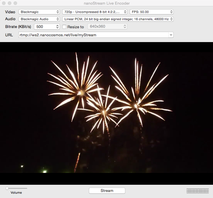 Adjust the video settings (Resolution/FPS) on nanoStream Live Encoder to match those on the Go Pro Hero4 camera. When using the integrated microphone of teh Go Pro Hero4 camera as audio source, select Blackmagic Audio as audio source. Otherwise, optionally select the external microphone as audio source (USB audio codec).