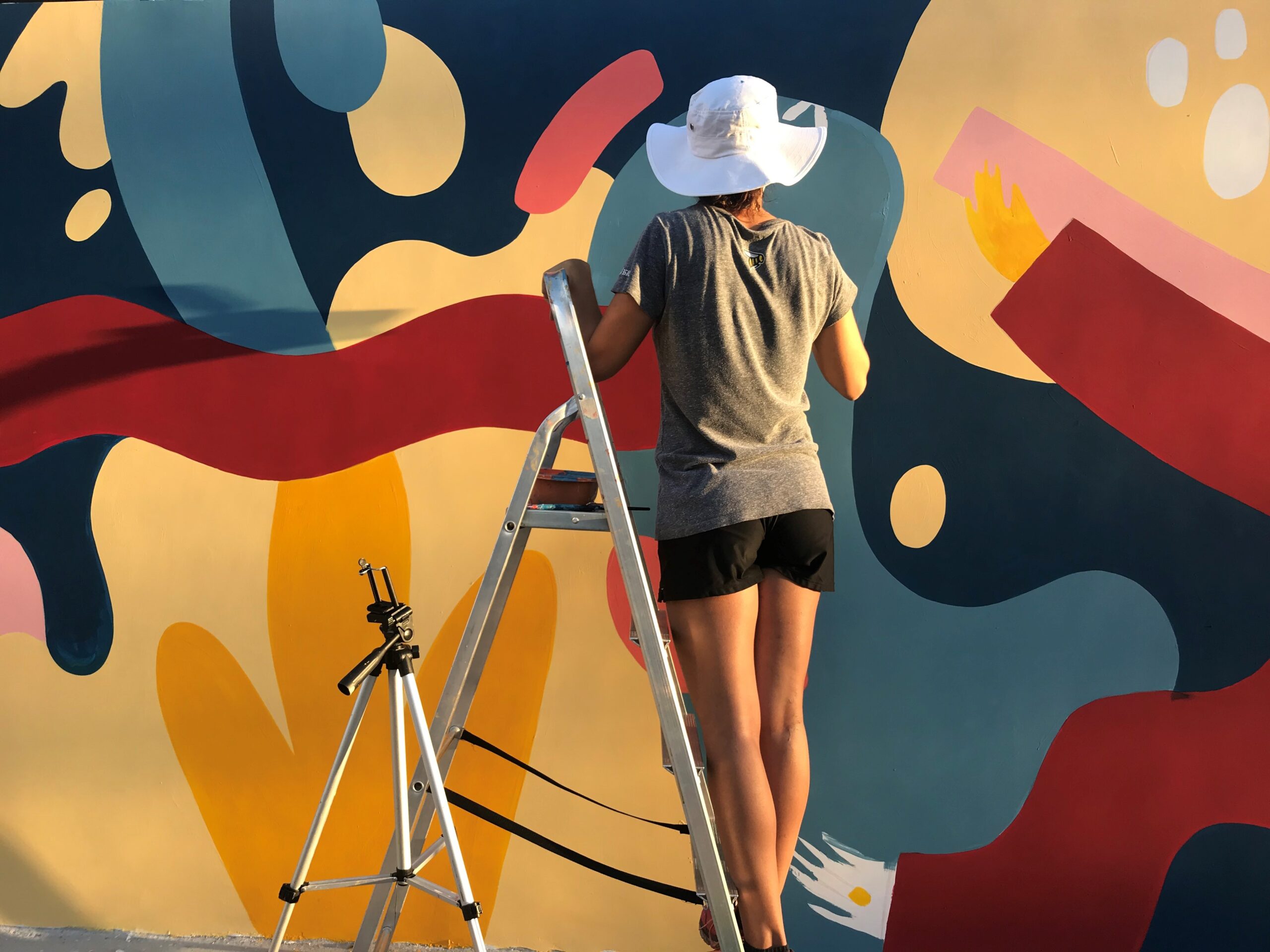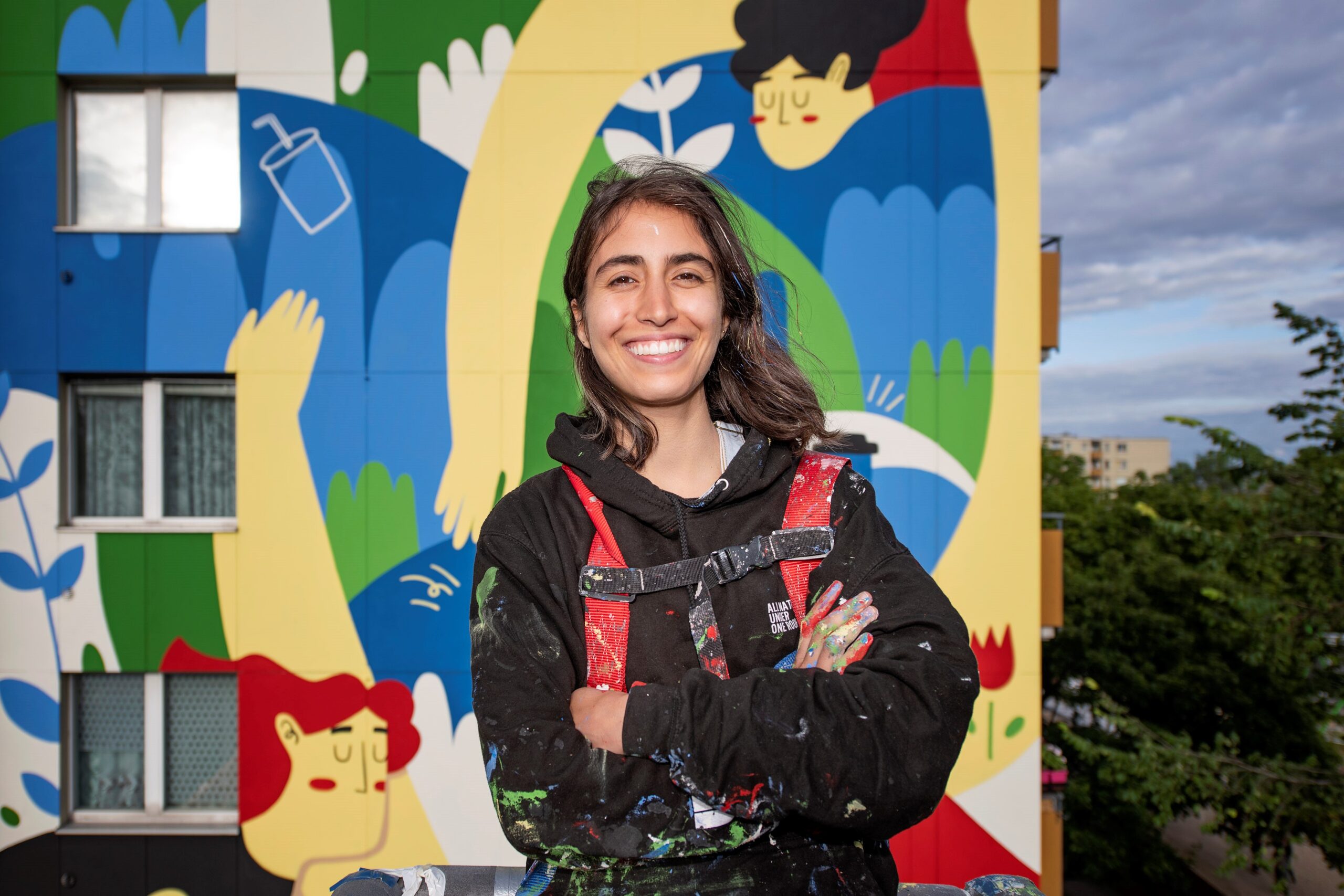 Now, the artist has established herself in the muralist community through her freelance work and submissions for “open calls”, a popular format for assigning mural artists to projects. Her portfolio includes murals in Brazil and across Europe and notable projects such as the 130-square-meter mural at Wetopia in Frankfurt, the 200-square-meter wall for BSR and Stiftung Naturschutz Berlin, and a collaborative mural with Ukrainian artist Danya Kovach in Marseille.