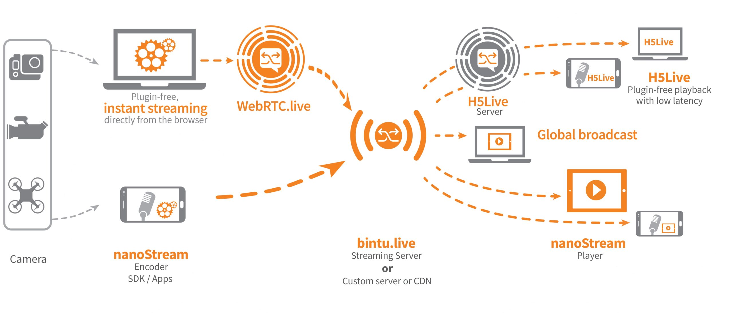 - The bintu.live streaming management platform lets you create, tag and group streams. Click here for an overview of the platform’s features to manage streams for instant live streaming and playback, tagging and grouping in combination with our SDKs and apps.