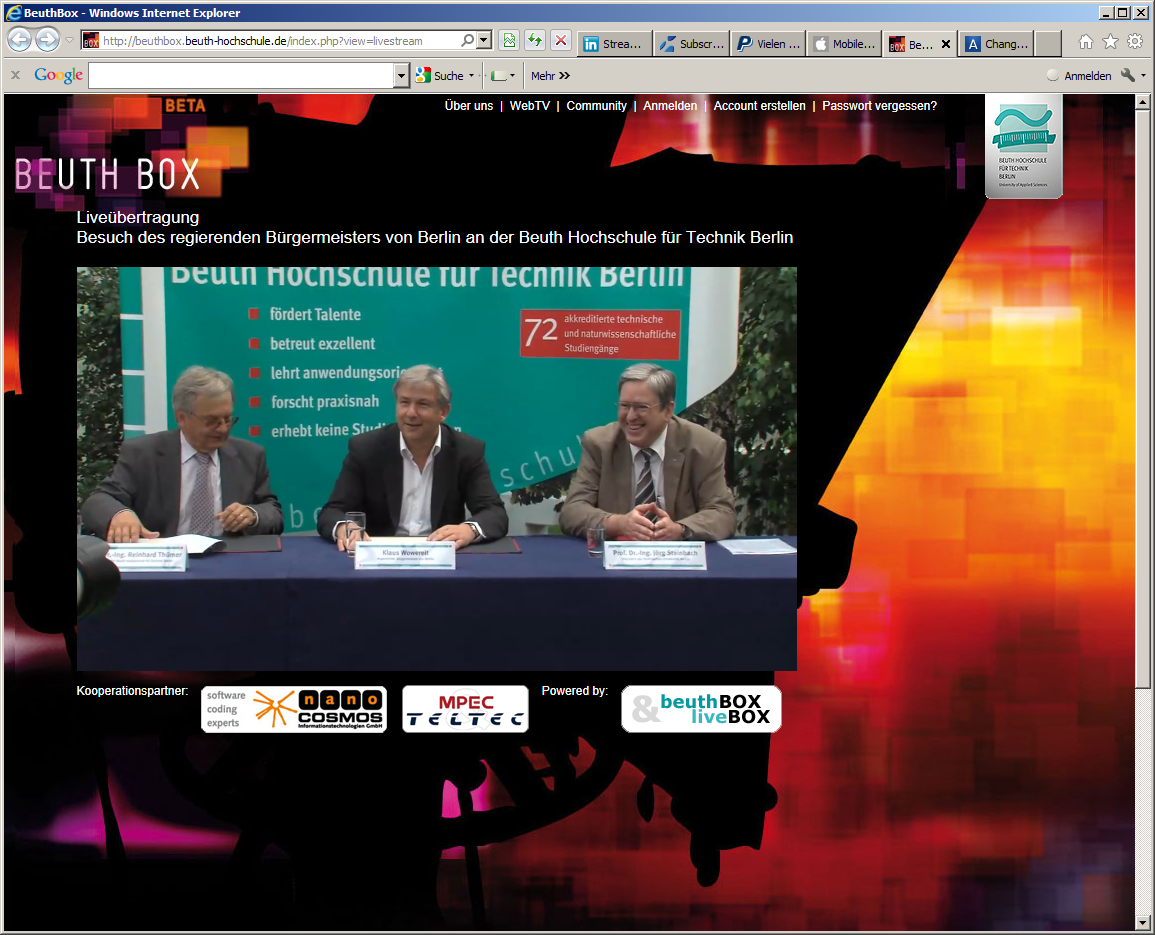 Die Beuth-Hochschule Berlin zeigt den Besuch des Regierenden Bürgermeisters von Berlin im Rahmen des Hochschultages als mobilen Livestream. Unterstützt durch nanocosmos Live Video Encoder.