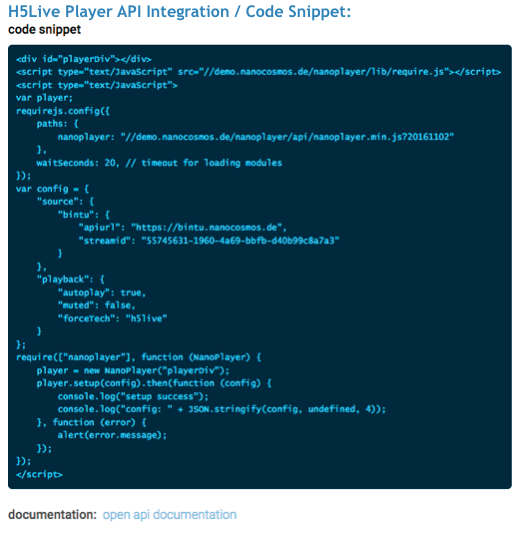 Further documentation related to the H5Live Player is available at the following link: https://www.nanocosmos.de/v4/documentation/nanoplayer-h5live