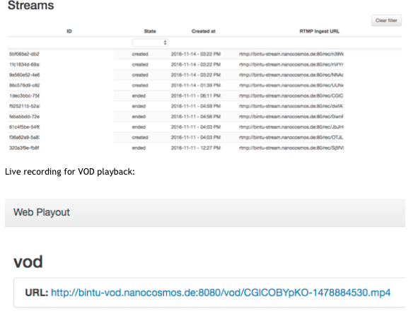 You can use the bintu.live dashboard or API to view existing and recorded streams.
