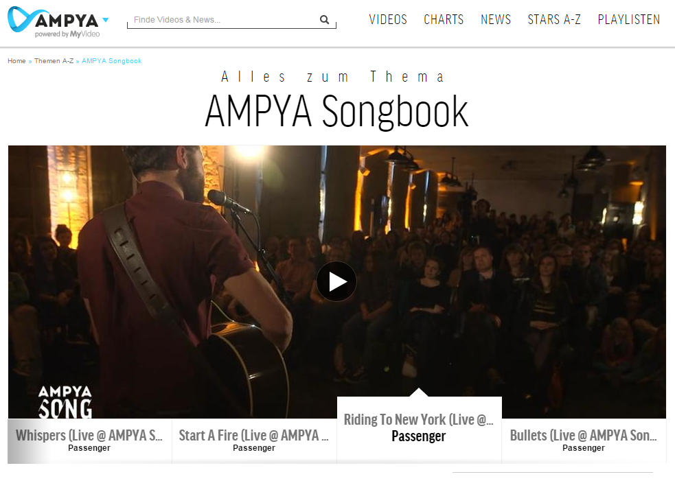 nanoStream is being used for a Live Music Video Streaming TV Show for Ampya.com, powered by myvideo.de.