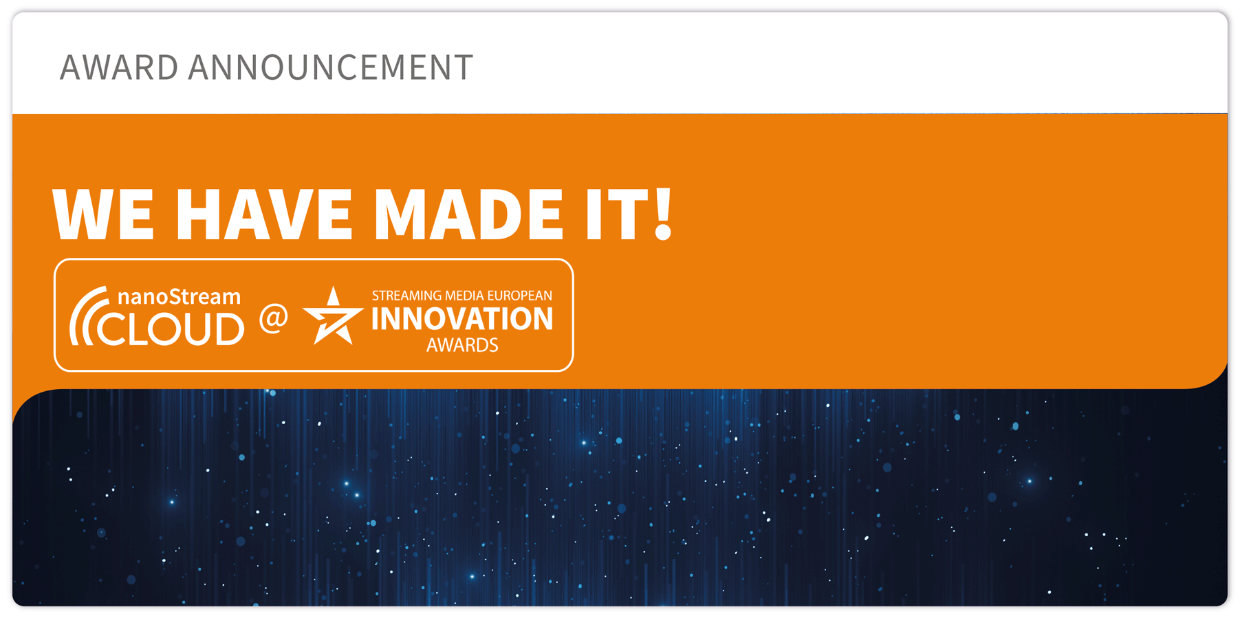 We are thrilled to announce that we have won the award for Best Corporate Video Platform with the outstanding performance of nanoStream Cloud!