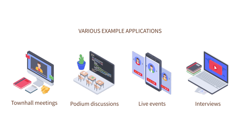 Increasing numbers of private companies and public institutions are utilising these low-latency streaming technologies for greater interaction at large-scale meetings. For example, local governments or large corporations can stream town-hall meetings where citizens or employees can raise their hands and ask questions in real time. Within companies, AGMs can be held where all stakeholders feel like they actually have a voice, regardless of where they are based in the world.